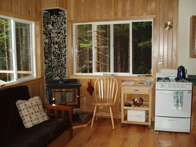 Duplex #2 has a bunk bed, a sleeper futon couch, a propane heater and a full bath. Duplex #2 is comfortable for 2-3 guests. Both sides of the Deer Island duplex have their own fully equipped kitchens.